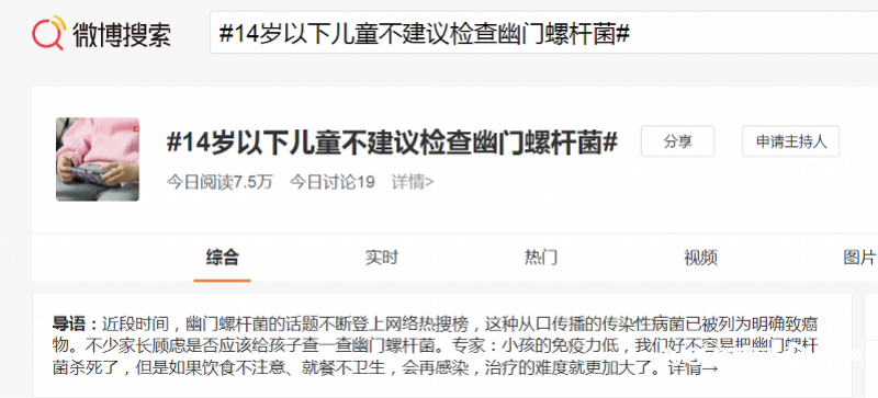 有研究指出,幽门螺杆菌感染与胃癌发病相关,而儿童的平均感染率也很高,儿童的肠胃健康牵动家长的心。近日,“无症状时 14岁以下儿童不建议检查幽门螺杆菌”的说法在社交网络引起关注。